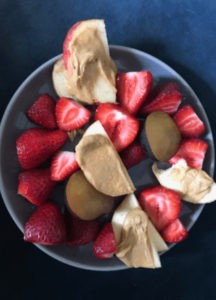 • Banane, Apfel oder Früchte nach Belieben in Scheiben schneiden, mit etwas Erdnuss-oder Mandelbutter bestreichen, fertig!