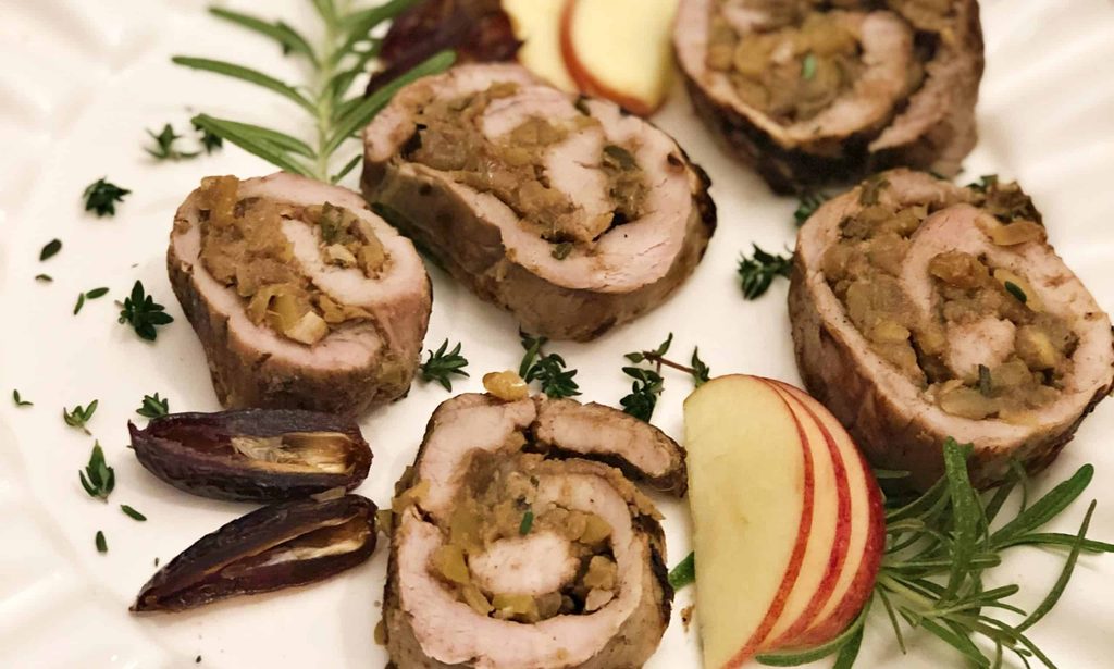 Solomillo de cerdo relleno de manzanas y dátiles