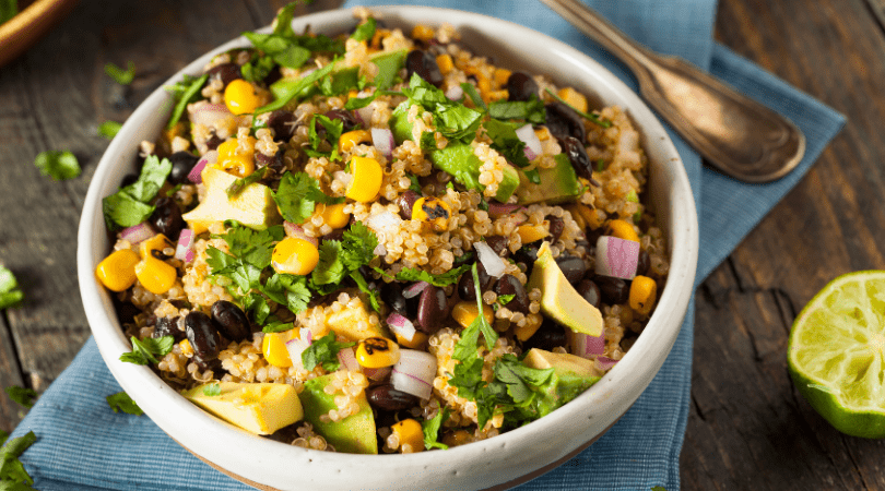 Ensalada de quinua, aguacate/palta y maíz