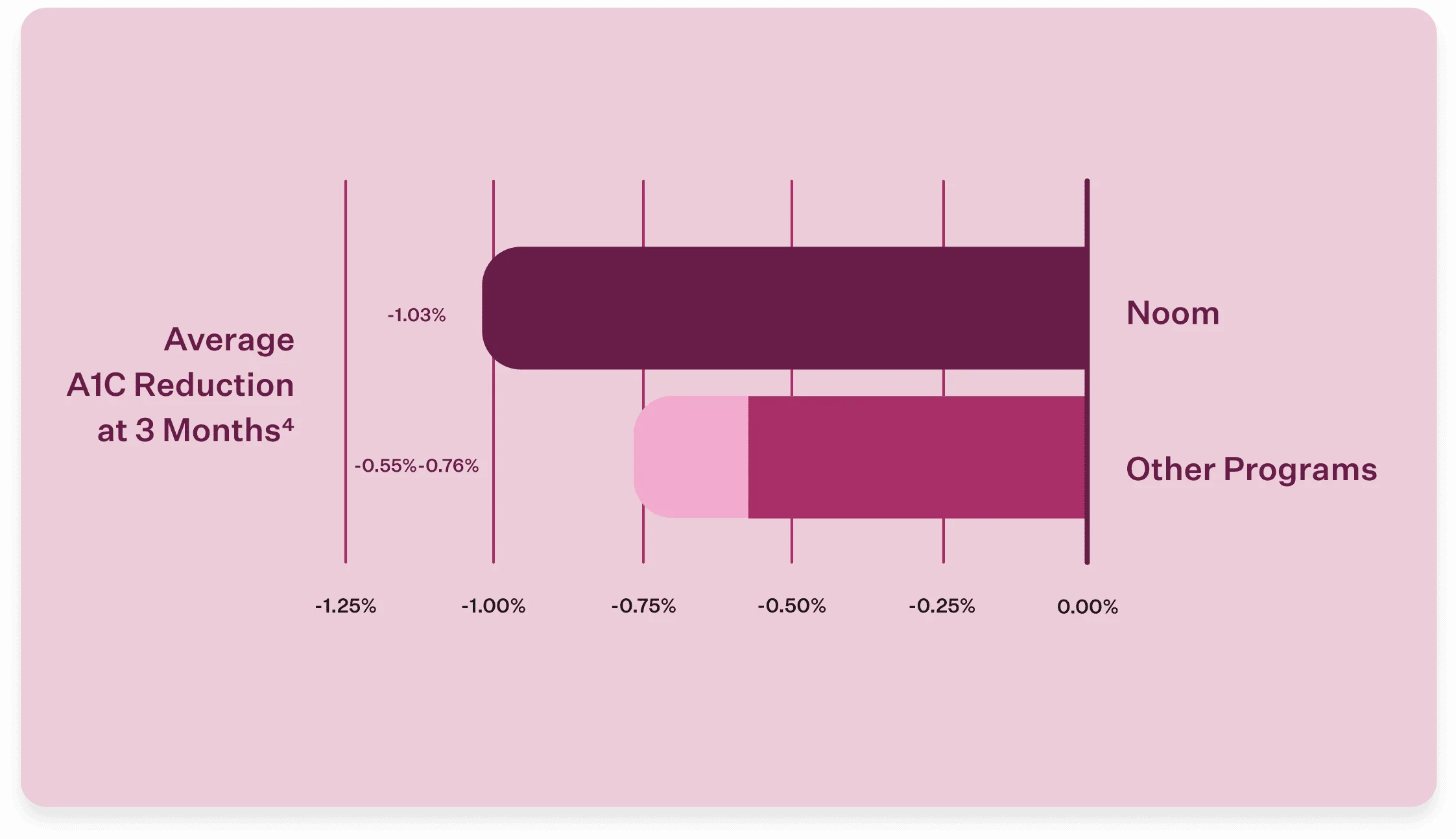 Noom brings proven expertise in diabetes management, demonstrating superior efficacy compared to similar diabetes solutions.